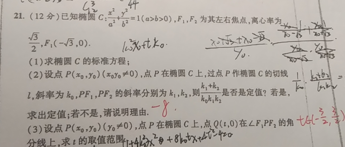 所以第二问为竞赛题,超纲,第三问不超纲,但都可以了解,多学点总没错,切线和切点实际上是特殊的极点极线,这个暂时就先不讲了,先来看看在本题中用到的切线性质如下: